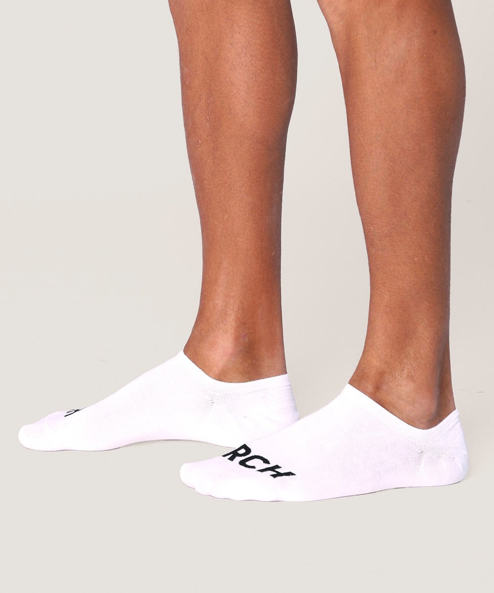 Calcetín invisible en estilo blanco, con puño que combina con la tela, logo tejido en el frente y agarre de silicona interno para mejor sujeción.