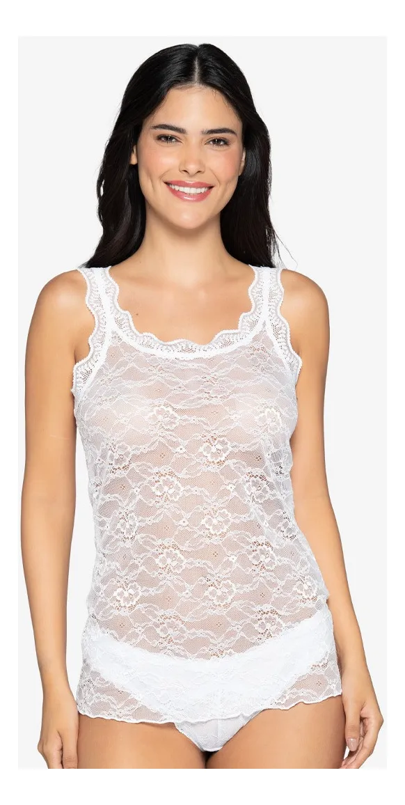 Hermosa camiseta sin mangas con delicados detalles de encaje, diseñada para ofrecer frescura y un toque femenino, ideal para cualquier ocasión.