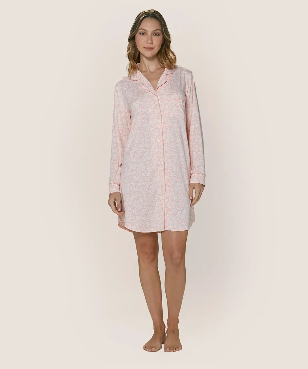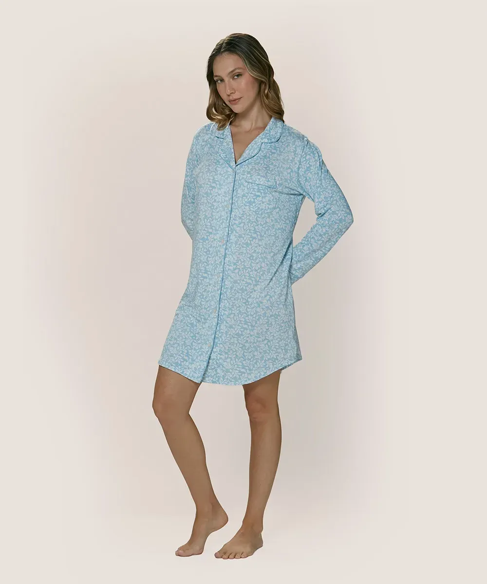 Camisa de dormir corta con botones frontales y estampado de flores. Su diseño moderno y femenino, junto a su tela liviana, la hacen ideal para dormir con estilo o estar cómoda en casa.