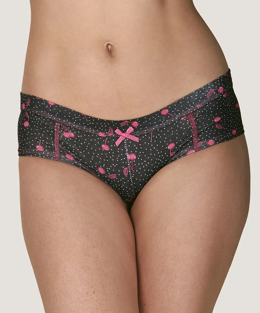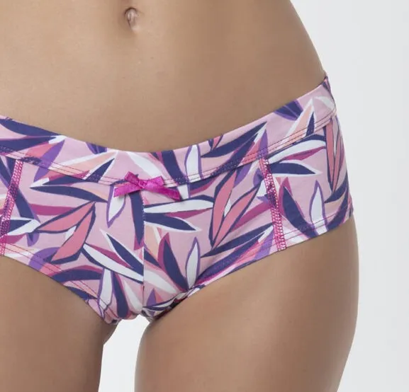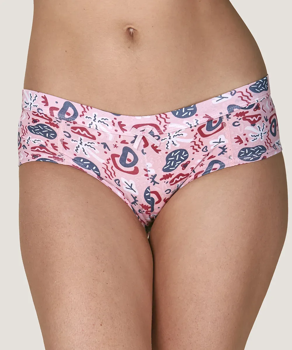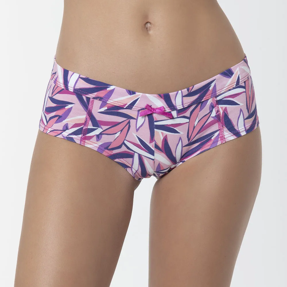 Pantaleta a la cadera de confección en algodón elasticado con estampado y costuras planas para que no se marquen en tu piel. Prenda ideal para usar todos los días con tu outfit favorito.