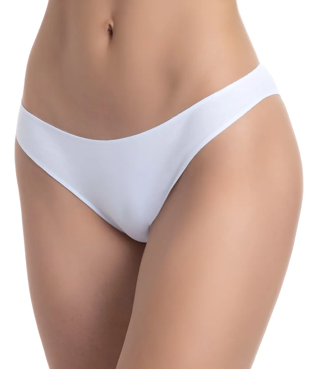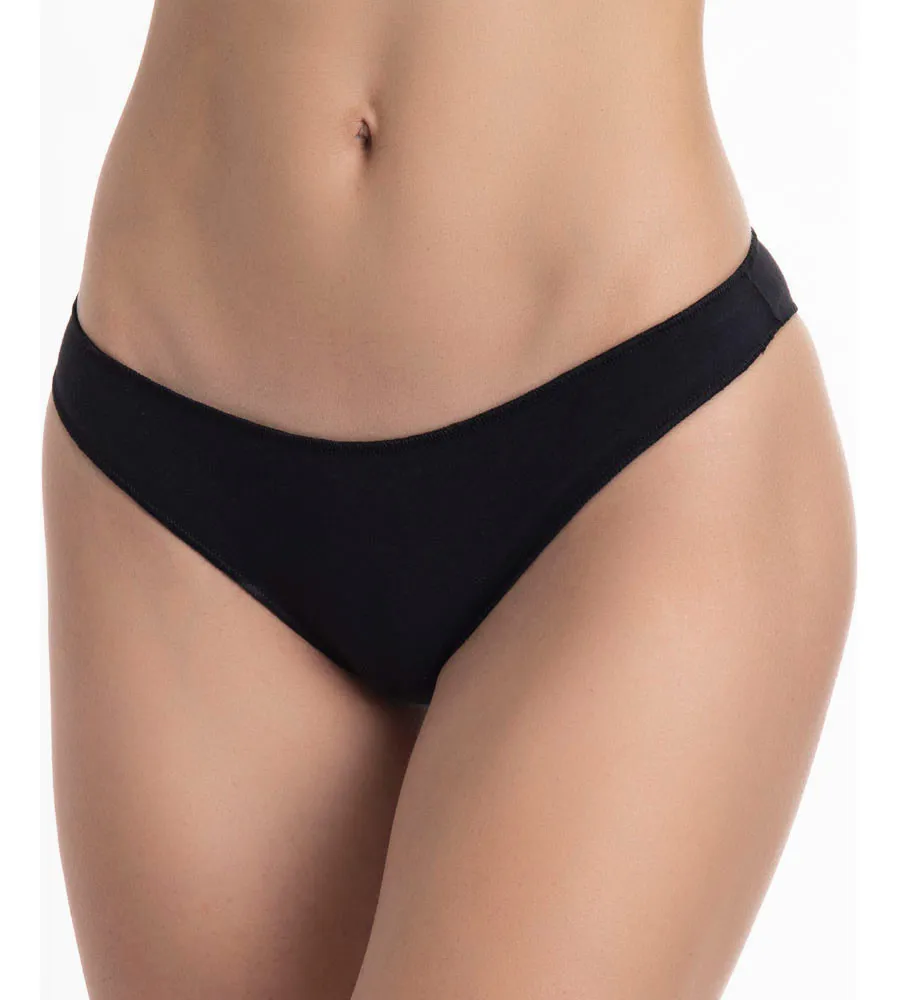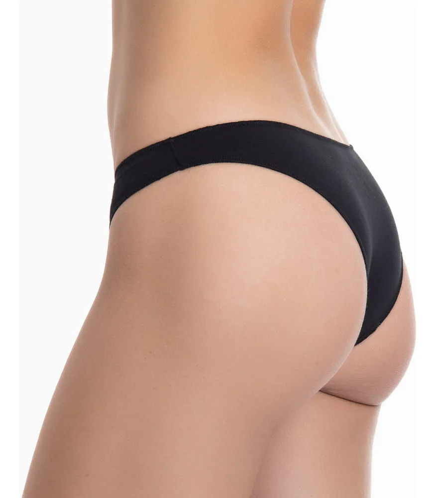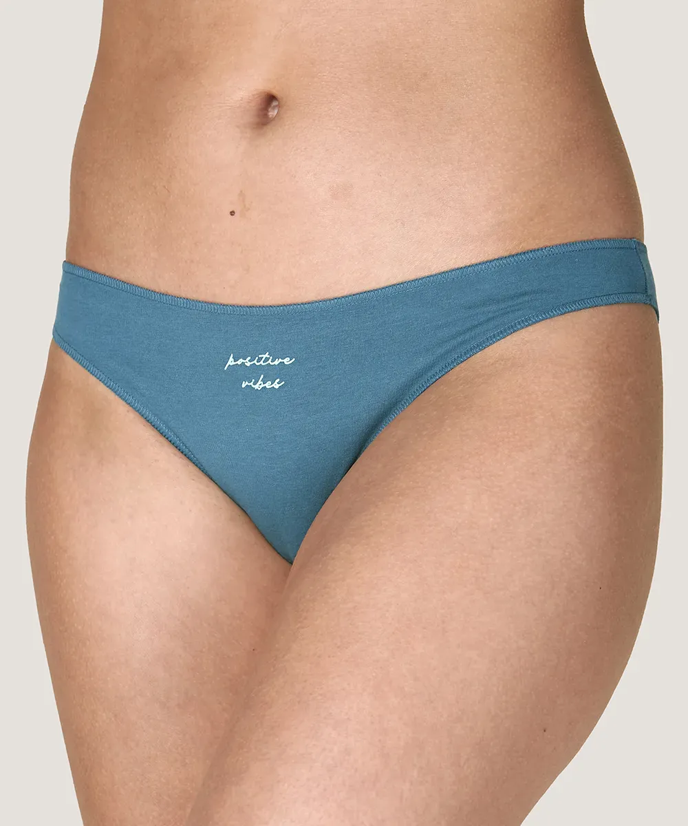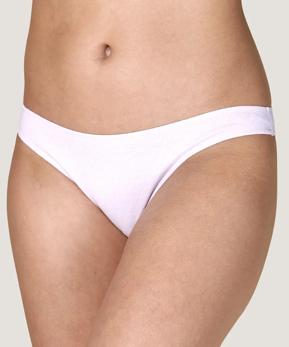 Tanga a la cadera de algodón elasticado con estampado y costuras planas en las piernas y el contorno para que no se marque bajo la ropa.